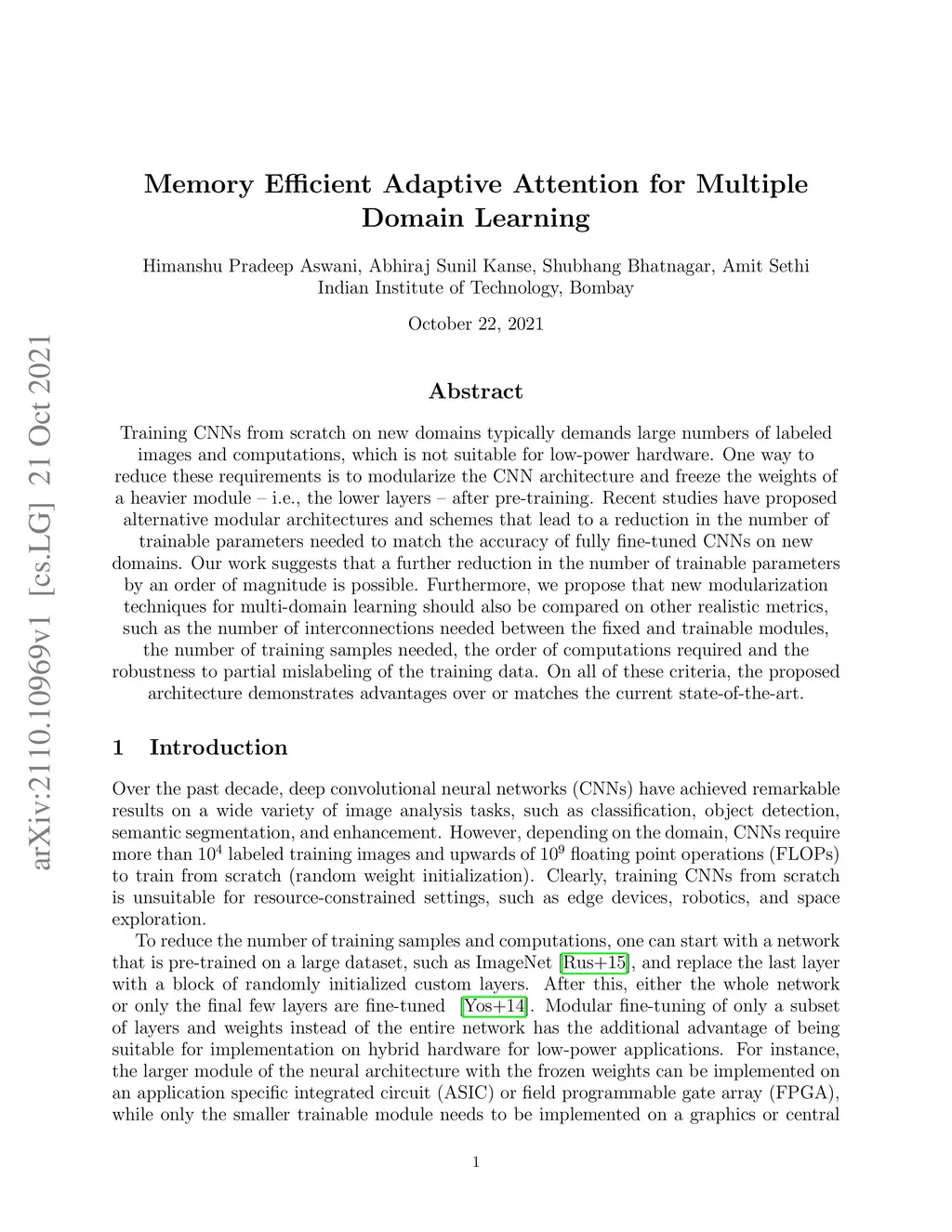 Memory Efficient Adaptive Attention For Multiple Domain Learning