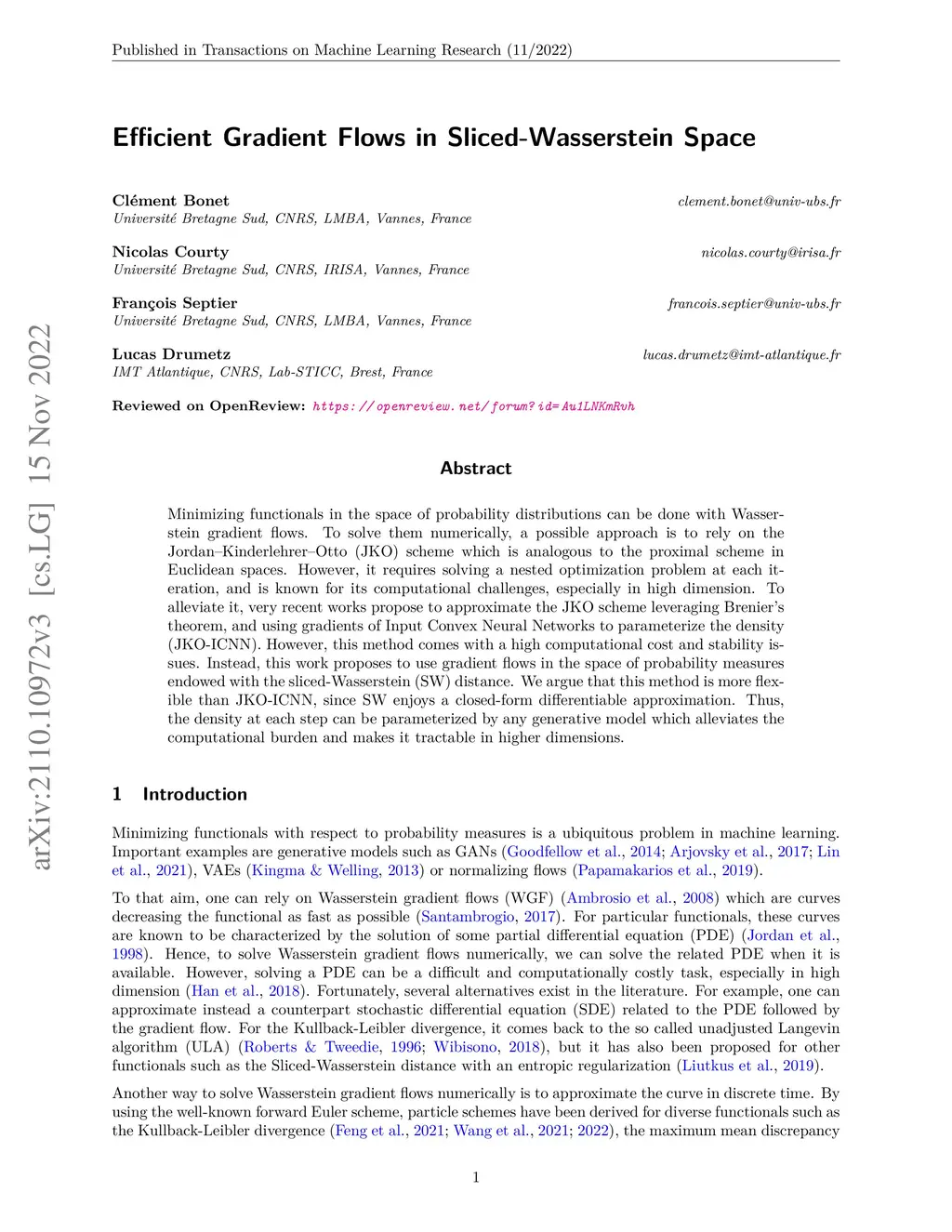 Minimizing functionals in the space of probability distributions can be done with Wasserstein gradient flows. To solve them numerically, a possible approach is to rely on the Jordan-Kinderlehrer-Otto (JKO) scheme which is analogous to the proximal scheme in Euclidean spaces. However, it requires solving a nested optimization problem at each iteration, and is known for its computational challenges, especially in high dimension. To alleviate it, very recent works propose to approximate the JKO scheme leveraging Brenier's theorem, and using gradients of Input Convex Neural Networks to parameterize the density (JKO-ICNN). However, this method comes with a high computational cost and stability issues. Instead, this work proposes to use gradient flows in the space of probability measures endowed with the sliced-Wasserstein (SW) distance. We argue that this method is more flexible than JKO-ICNN, since SW enjoys a closed-form differentiable approximation. Thus, the density at each step can be parameterized by any generative model which alleviates the computational burden and makes it tractable in higher dimensions.