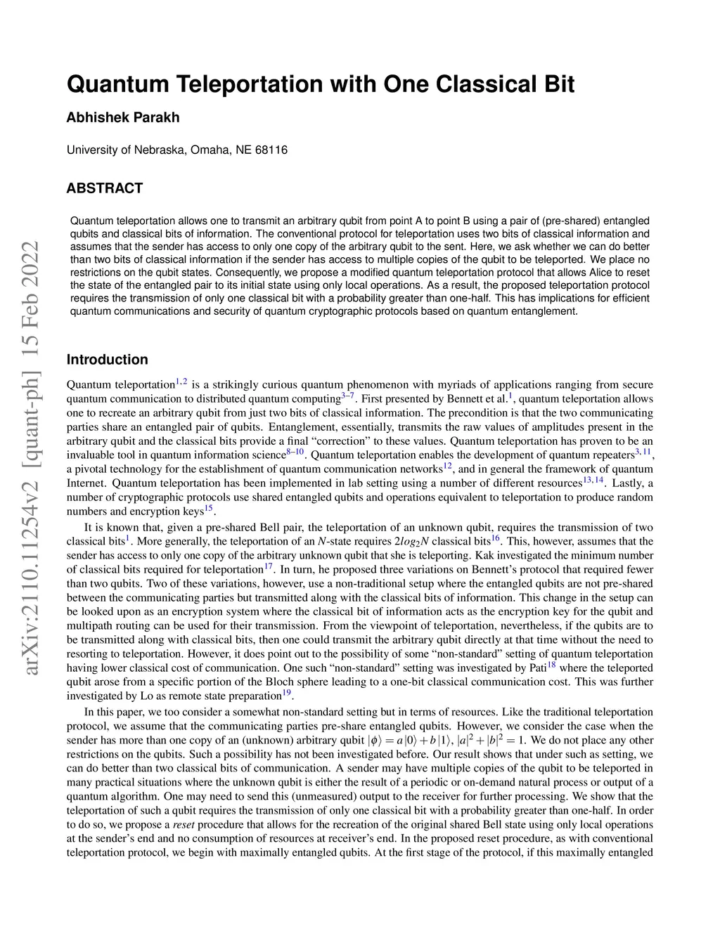 Quantum teleportation allows one to transmit an arbitrary qubit from point A to point B using a pair of (pre-shared) entangled qubits and classical bits of information. The conventional protocol for teleportation uses two bits of classical information and assumes that the sender has access to only one copy of the arbitrary qubit to the sent. Here, we ask whether we can do better than two bits of classical information if the sender has access to multiple copies of the qubit to be teleported. We place no restrictions on the qubit states. Consequently, we propose a modified quantum teleportation protocol that allows Alice to reset the state of the entangled pair to its initial state using only local operations. As a result, the proposed teleportation protocol requires the transmission of only one classical bit with a probability greater than one-half. This has implications for efficient quantum communications and security of quantum cryptographic protocols based on quantum entanglement.