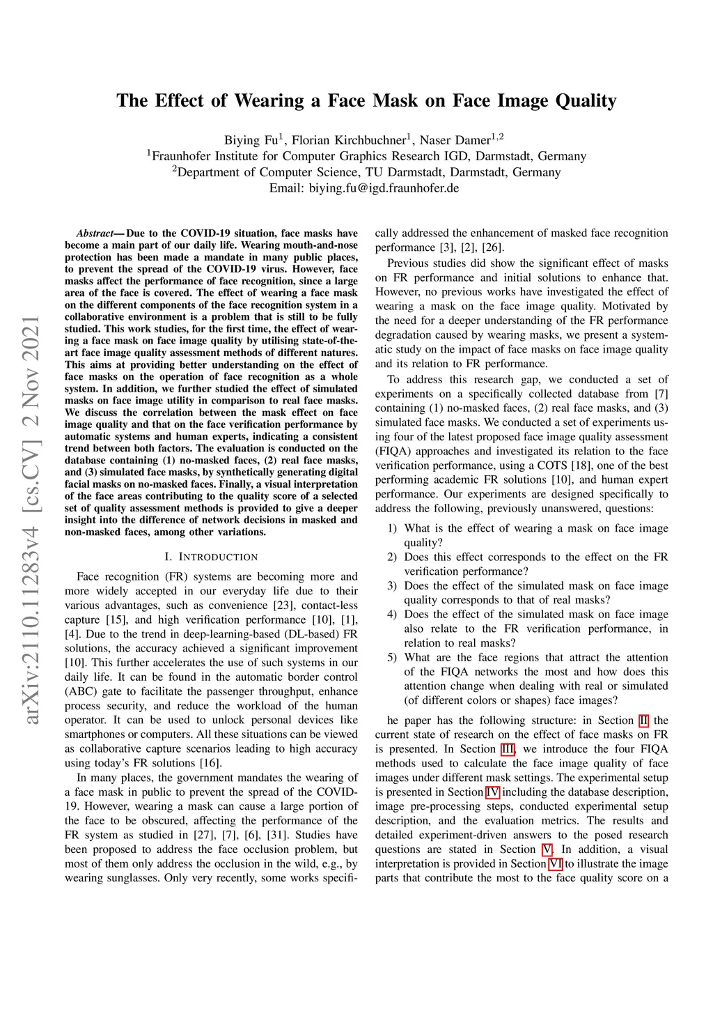 Due to the COVID-19 situation, face masks have become a main part of our daily life. Wearing mouth-and-nose protection has been made a mandate in many public places, to prevent the spread of the COVID-19 virus. However, face masks affect the performance of face recognition, since a large area of the face is covered. The effect of wearing a face mask on the different components of the face recognition system in a collaborative environment is a problem that is still to be fully studied. This work studies, for the first time, the effect of wearing a face mask on face image quality by utilising state-of-the-art face image quality assessment methods of different natures. This aims at providing better understanding on the effect of face masks on the operation of face recognition as a whole system. In addition, we further studied the effect of simulated masks on face image utility in comparison to real face masks. We discuss the correlation between the mask effect on face image quality and that on the face verification performance by automatic systems and human experts, indicating a consistent trend between both factors. The evaluation is conducted on the database containing (1) no-masked faces, (2) real face masks, and (3) simulated face masks, by synthetically generating digital facial masks on no-masked faces. Finally, a visual interpretation of the face areas contributing to the quality score of a selected set of quality assessment methods is provided to give a deeper insight into the difference of network decisions in masked and non-masked faces, among other variations.