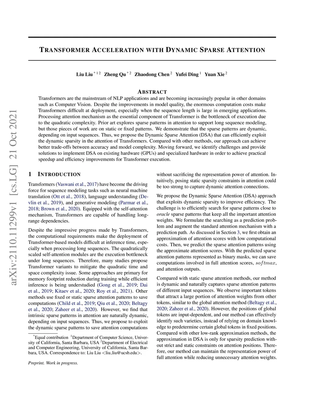 Transformer Acceleration with Dynamic Sparse Attention