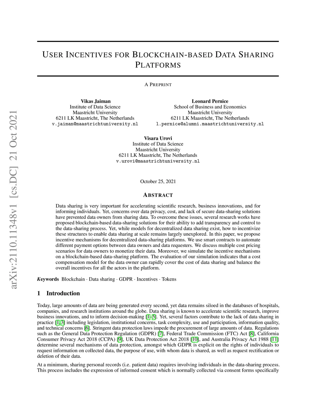 Data sharing is very important for accelerating scientific research, business innovations, and for informing individuals. Yet, concerns over data privacy, cost, and lack of secure data-sharing solutions have prevented data owners from sharing data. To overcome these issues, several research works have proposed blockchain-based data-sharing solutions for their ability to add transparency and control to the data-sharing process. Yet, while models for decentralized data sharing exist, how to incentivize these structures to enable data sharing at scale remains largely unexplored. In this paper, we propose incentive mechanisms for decentralized data-sharing platforms. We use smart contracts to automate different payment options between data owners and data requesters. We discuss multiple cost pricing scenarios for data owners to monetize their data. Moreover, we simulate the incentive mechanisms on a blockchain-based data-sharing platform. The evaluation of our simulation indicates that a cost compensation model for the data owner can rapidly cover the cost of data sharing and balance the overall incentives for all the actors in the platform.