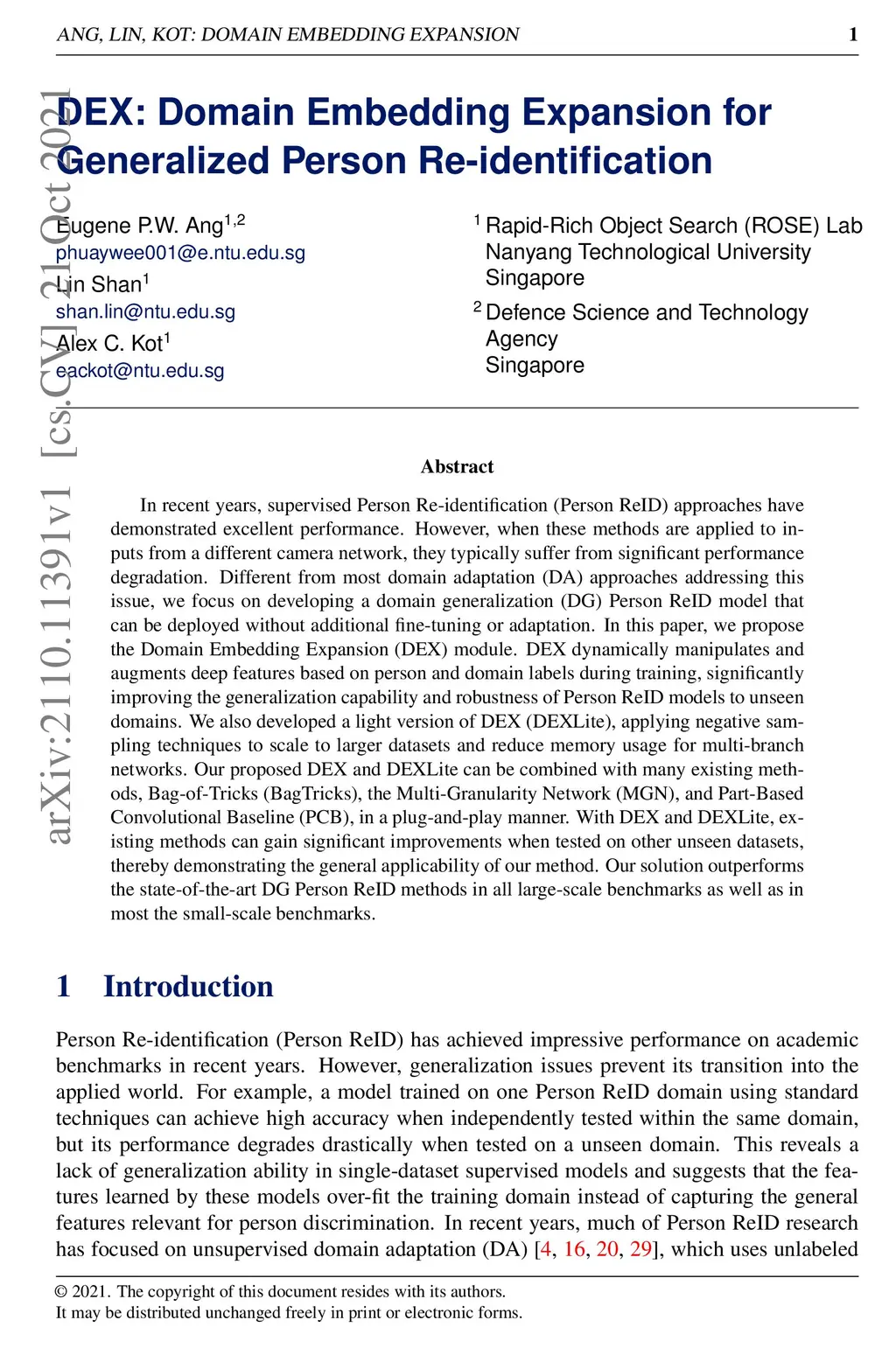 DEX: Domain Embedding Expansion for Generalized Person Re-identification