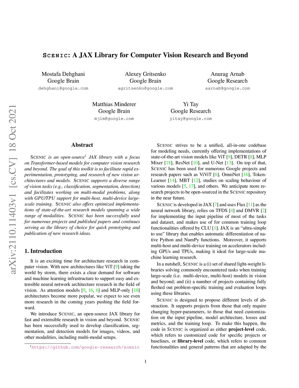 SCENIC: A JAX Library for Computer Vision Research and Beyond