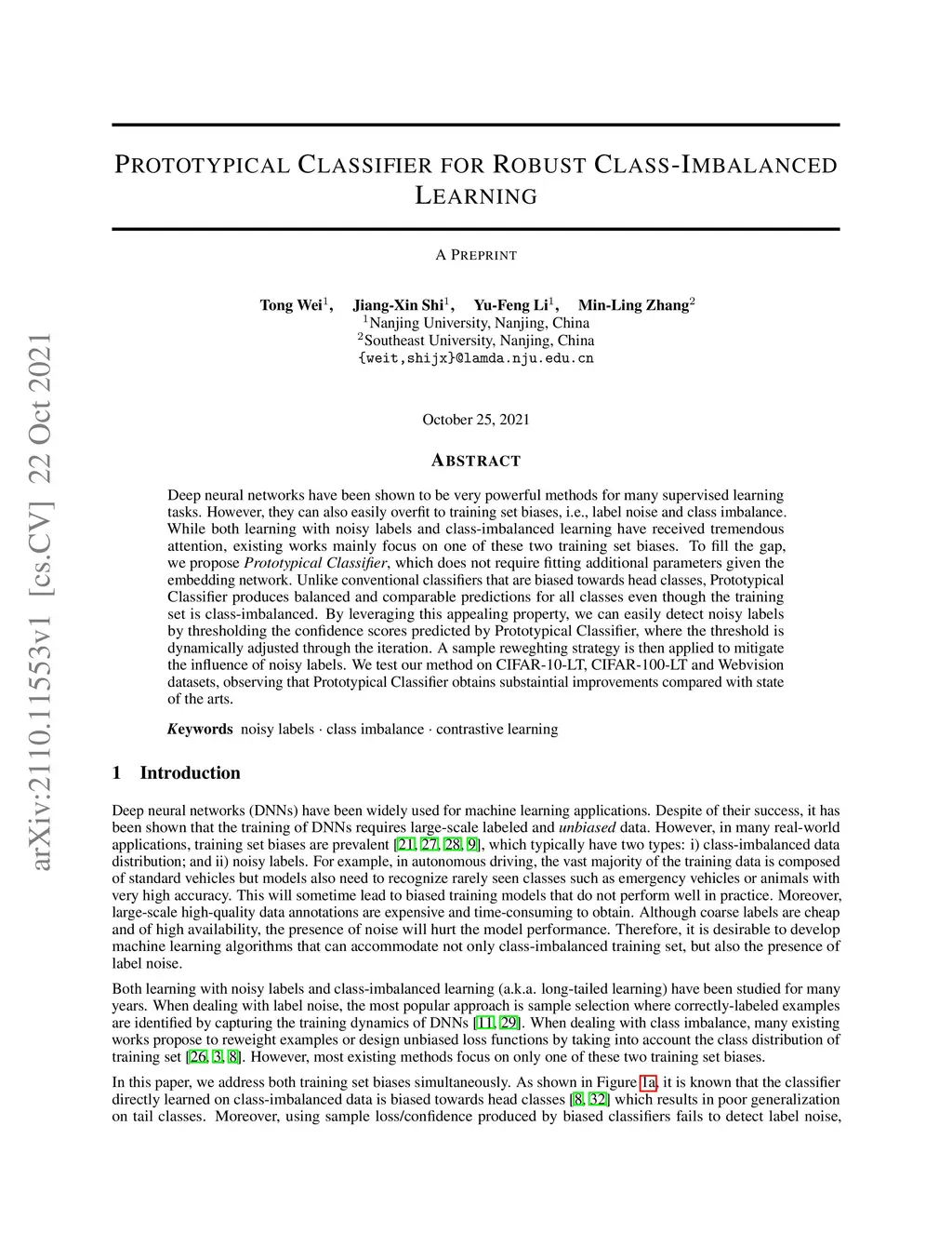 Deep neural networks have been shown to be very powerful methods for many supervised learning tasks. However, they can also easily overfit to training set biases, i.e., label noise and class imbalance. While both learning with noisy labels and class-imbalanced learning have received tremendous attention, existing works mainly focus on one of these two training set biases. To fill the gap, we propose \textit{Prototypical Classifier}, which does not require fitting additional parameters given the embedding network. Unlike conventional classifiers that are biased towards head classes, Prototypical Classifier produces balanced and comparable predictions for all classes even though the training set is class-imbalanced. By leveraging this appealing property, we can easily detect noisy labels by thresholding the confidence scores predicted by Prototypical Classifier, where the threshold is dynamically adjusted through the iteration. A sample reweghting strategy is then applied to mitigate the influence of noisy labels. We test our method on CIFAR-10-LT, CIFAR-100-LT and Webvision datasets, observing that Prototypical Classifier obtains substaintial improvements compared with state of the arts.