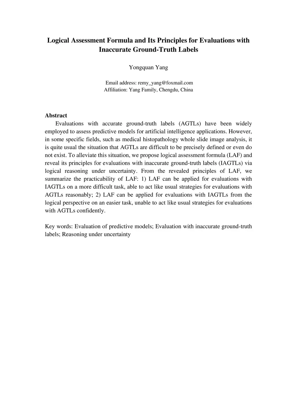 Evaluations with accurate ground-truth labels (AGTLs) have been widely employed to assess predictive models for artificial intelligence applications. However, in some specific fields, such as medical histopathology whole slide image analysis, it is quite usual the situation that AGTLs are difficult to be precisely defined or even do not exist. To alleviate this situation, we propose logical assessment formula (LAF) and reveal its principles for evaluations with inaccurate ground-truth labels (IAGTLs) via logical reasoning under uncertainty. From the revealed principles of LAF, we summarize the practicability of LAF: 1) LAF can be applied for evaluations with IAGTLs on a more difficult task, able to act like usual strategies for evaluations with AGTLs reasonably; 2) LAF can be applied for evaluations with IAGTLs from the logical perspective on an easier task, unable to act like usual strategies for evaluations with AGTLs confidently.