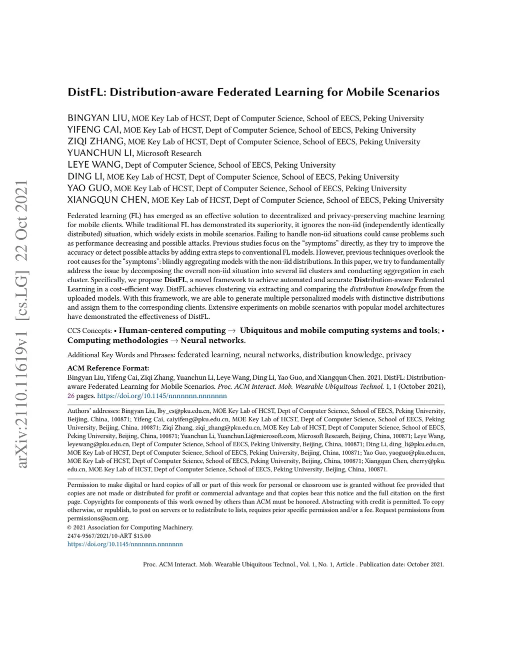 DistFL: Distribution-aware Federated Learning for Mobile Scenarios
