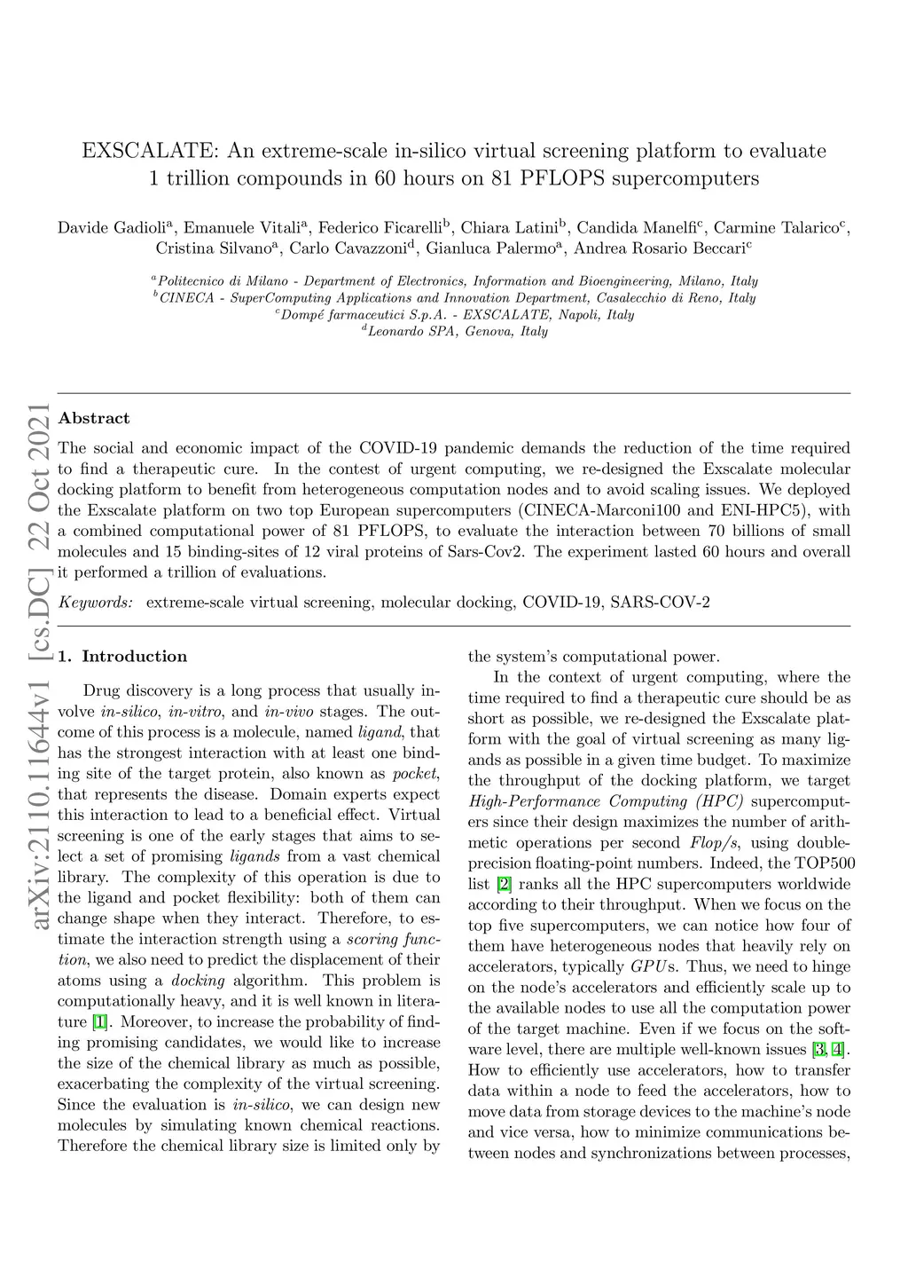 EXSCALATE: An extreme-scale in-silico virtual screening platform to
