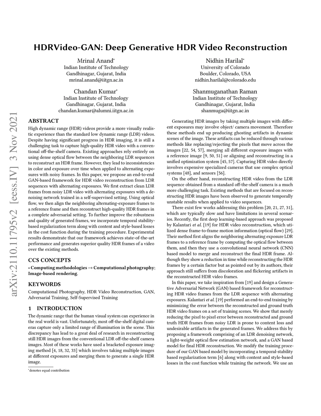 HDRVideo-GAN: Deep Generative HDR Video Reconstruction