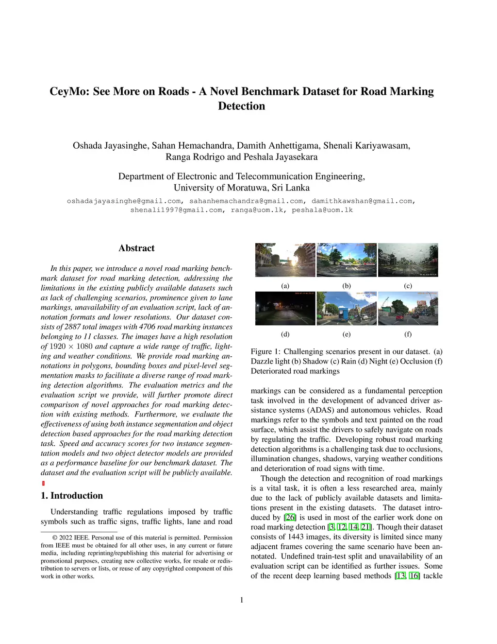 CeyMo: See More on Roads -- A Novel Benchmark Dataset for Road Marking