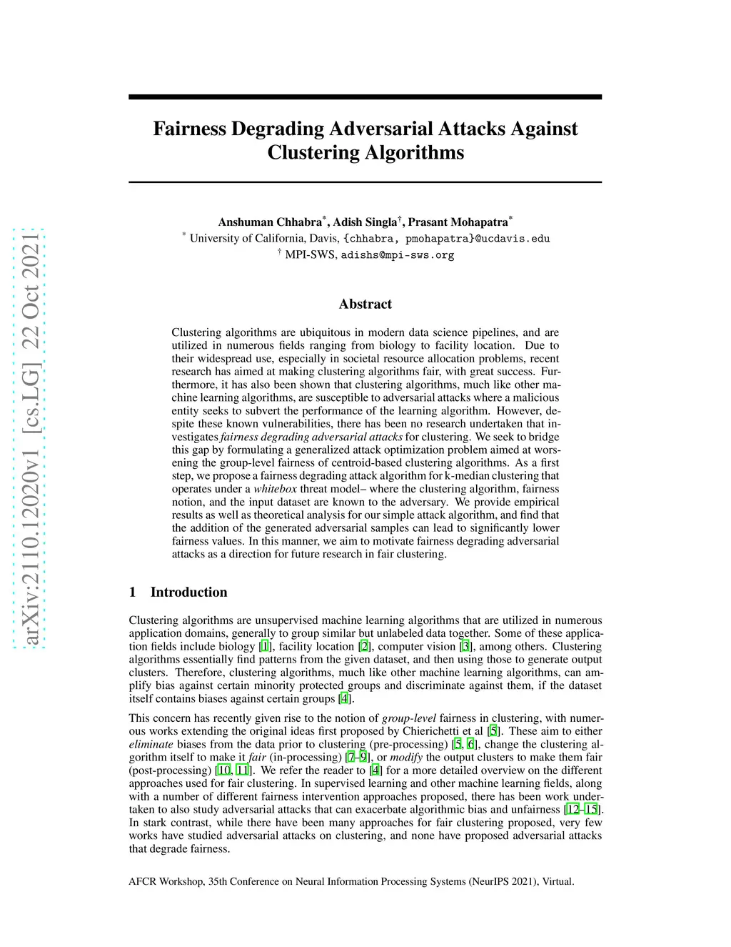 Fairness Degrading Adversarial Attacks Against Clustering Algorithms