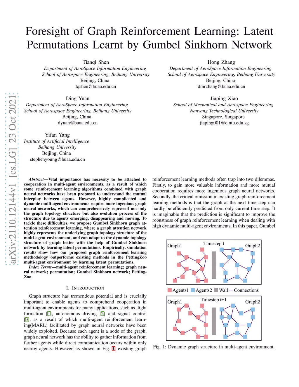 Vital importance has necessity to be attached to cooperation in multi-agent environments, as a result of which some reinforcement learning algorithms combined with graph neural networks have been proposed to understand the mutual interplay between agents. However, highly complicated and dynamic multi-agent environments require more ingenious graph neural networks, which can comprehensively represent not only the graph topology structure but also evolution process of the structure due to agents emerging, disappearing and moving. To tackle these difficulties, we propose Gumbel Sinkhorn graph attention reinforcement learning, where a graph attention network highly represents the underlying graph topology structure of the multi-agent environment, and can adapt to the dynamic topology structure of graph better with the help of Gumbel Sinkhorn network by learning latent permutations. Empirically, simulation results show how our proposed graph reinforcement learning methodology outperforms existing methods in the PettingZoo multi-agent environment by learning latent permutations.