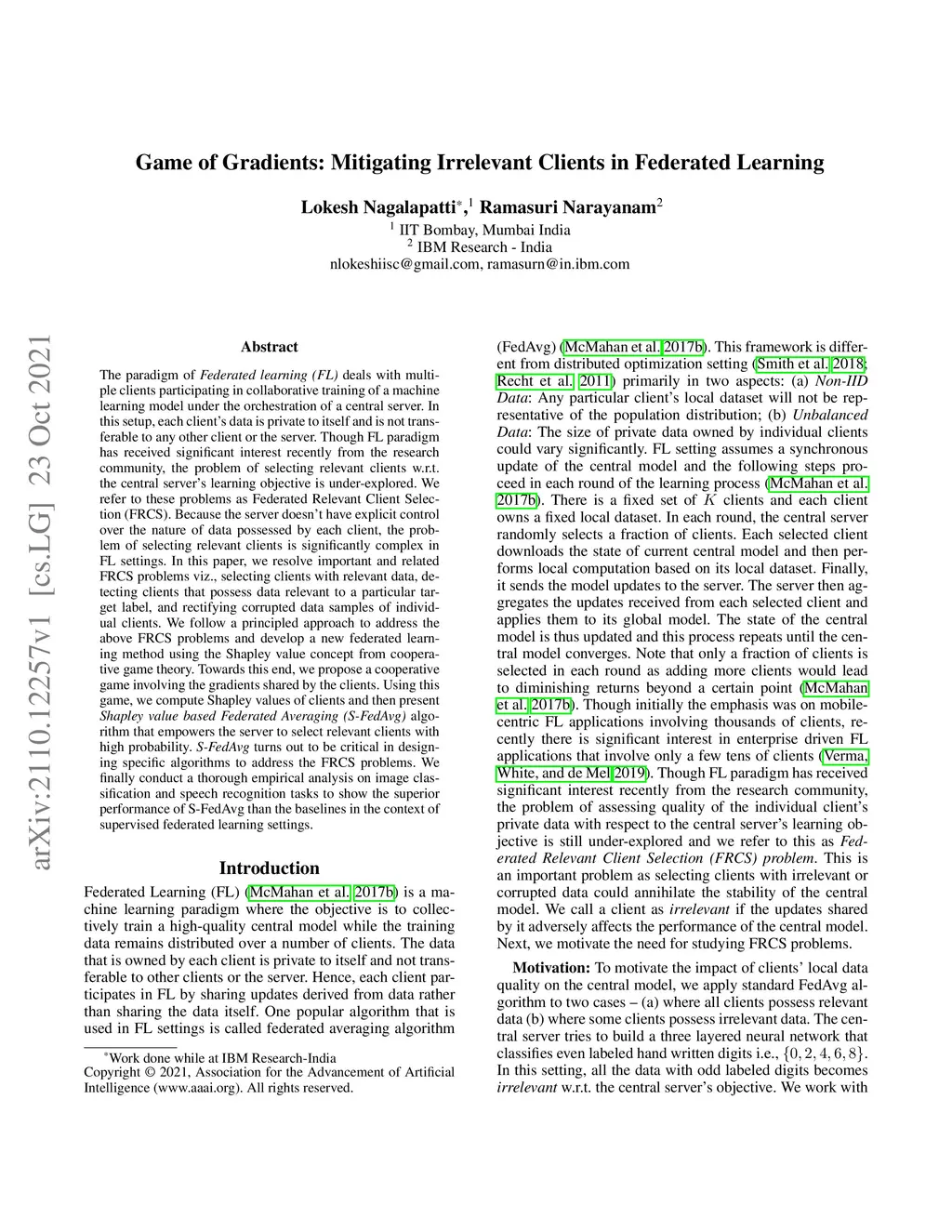Game of Gradients: Mitigating Irrelevant Clients in Federated Learning