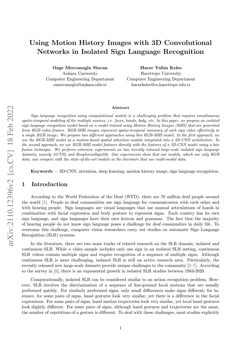 Using Motion History Images with 3D Convolutional Networks in Isolated