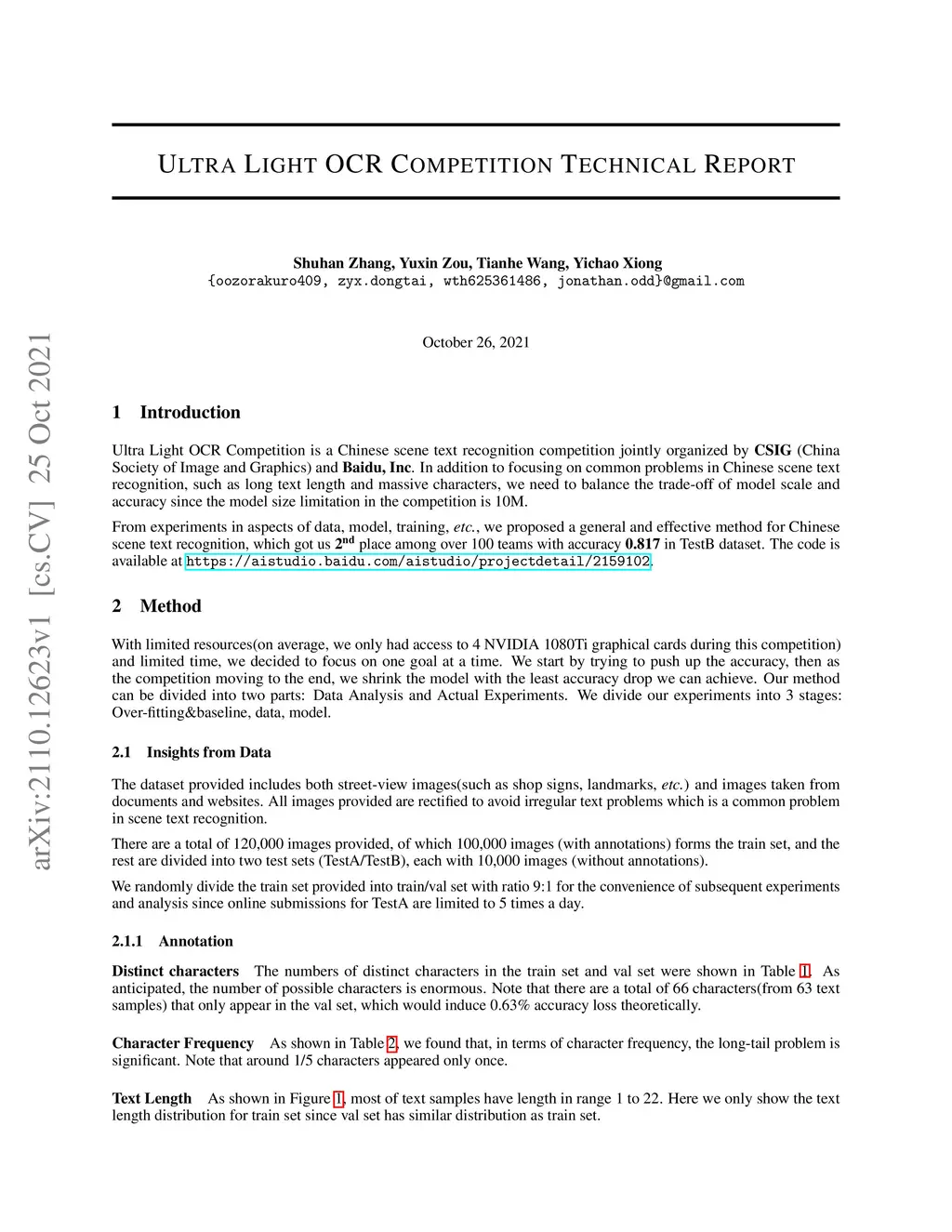 Ultra Light OCR Competition Technical Report