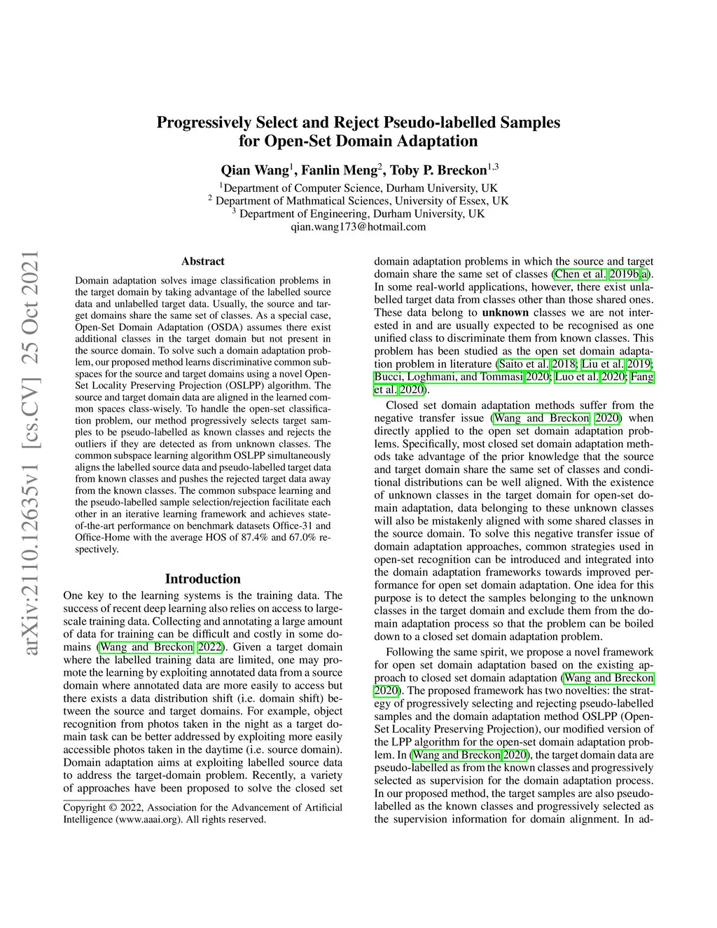 Progressively Select and Reject Pseudo-labelled Samples for Open-Set