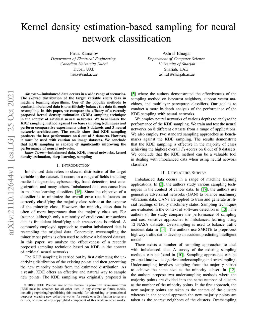 Kernel density estimation-based sampling for neural network