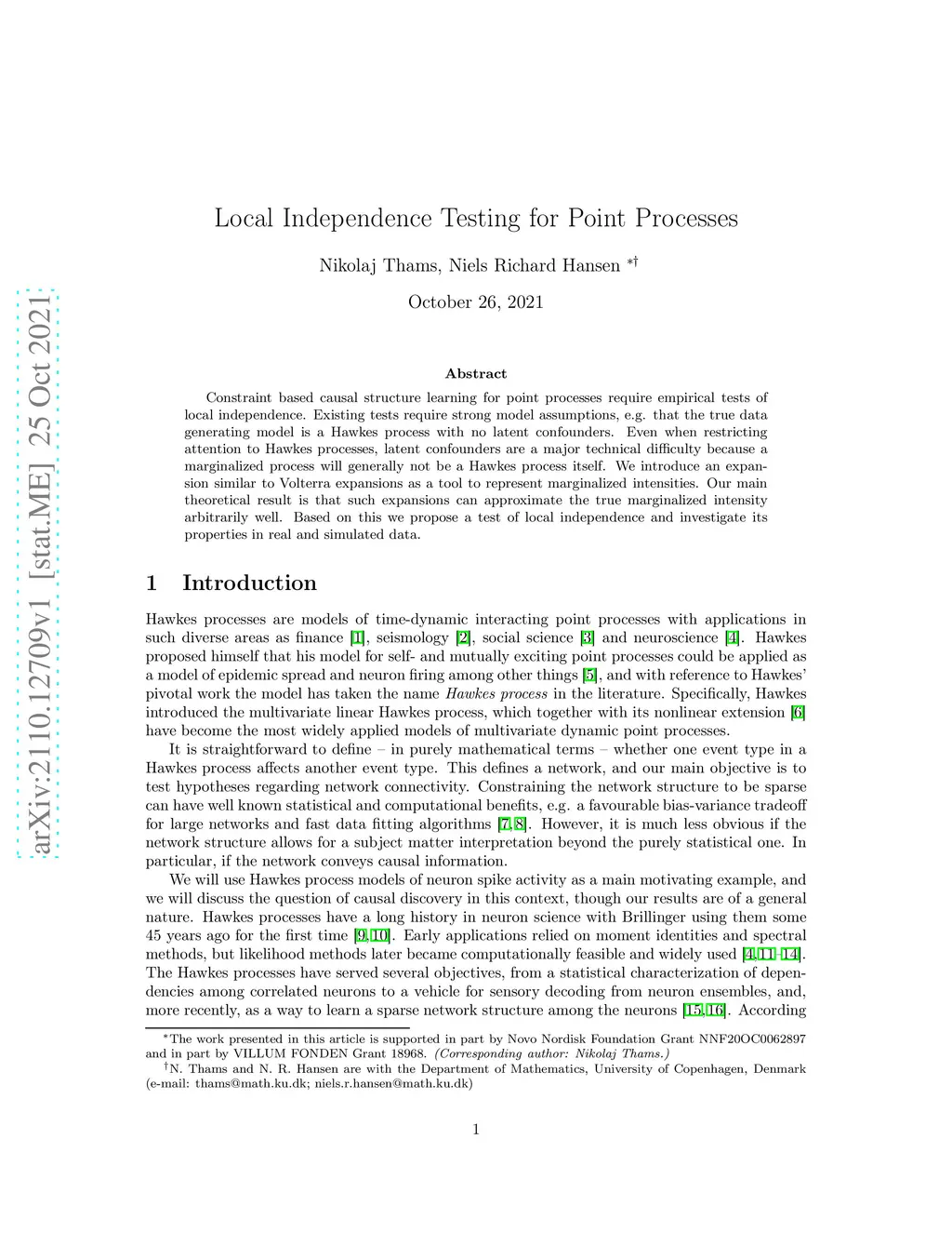 Constraint based causal structure learning for point processes require empirical tests of local independence. Existing tests require strong model assumptions, e.g. that the true data generating model is a Hawkes process with no latent confounders. Even when restricting attention to Hawkes processes, latent confounders are a major technical difficulty because a marginalized process will generally not be a Hawkes process itself. We introduce an expansion similar to Volterra expansions as a tool to represent marginalized intensities. Our main theoretical result is that such expansions can approximate the true marginalized intensity arbitrarily well. Based on this we propose a test of local independence and investigate its properties in real and simulated data.