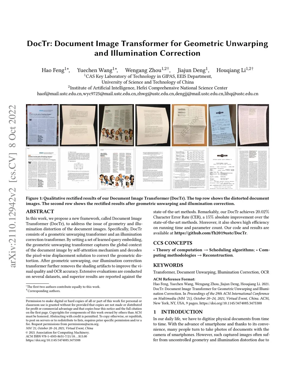 DocTr: Document Image Transformer for Geometric Unwarping and