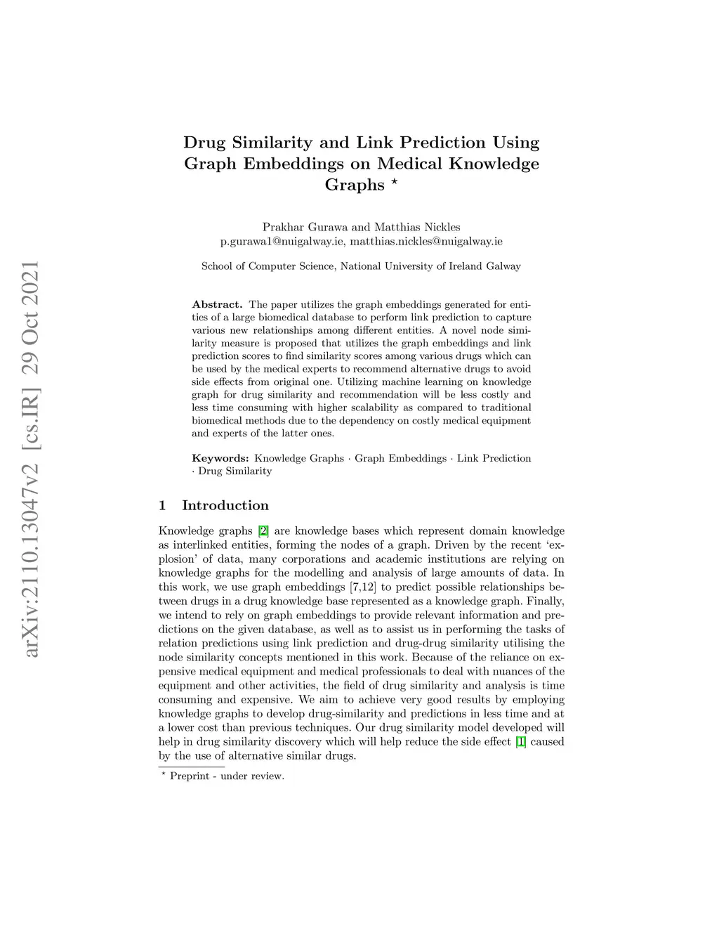 Drug Similarity and Link Prediction Using Graph Embeddings on Medical