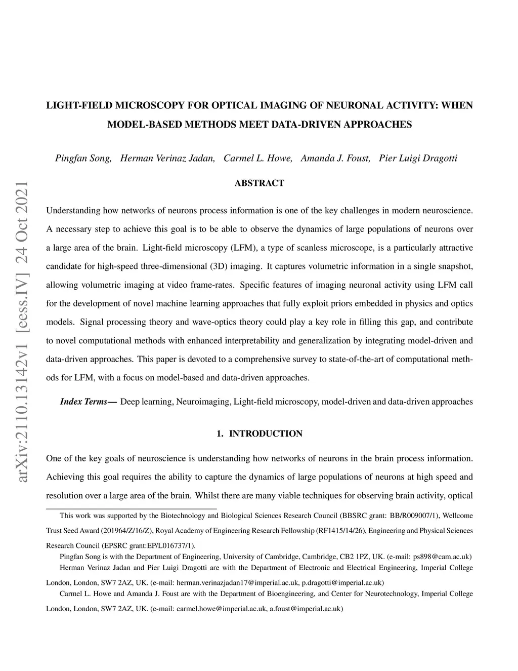 Understanding how networks of neurons process information is one of the key challenges in modern neuroscience. A necessary step to achieve this goal is to be able to observe the dynamics of large populations of neurons over a large area of the brain. Light-field microscopy (LFM), a type of scanless microscope, is a particularly attractive candidate for high-speed three-dimensional (3D) imaging. It captures volumetric information in a single snapshot, allowing volumetric imaging at video frame-rates. Specific features of imaging neuronal activity using LFM call for the development of novel machine learning approaches that fully exploit priors embedded in physics and optics models. Signal processing theory and wave-optics theory could play a key role in filling this gap, and contribute to novel computational methods with enhanced interpretability and generalization by integrating model-driven and data-driven approaches. This paper is devoted to a comprehensive survey to state-of-the-art of computational methods for LFM, with a focus on model-based and data-driven approaches.