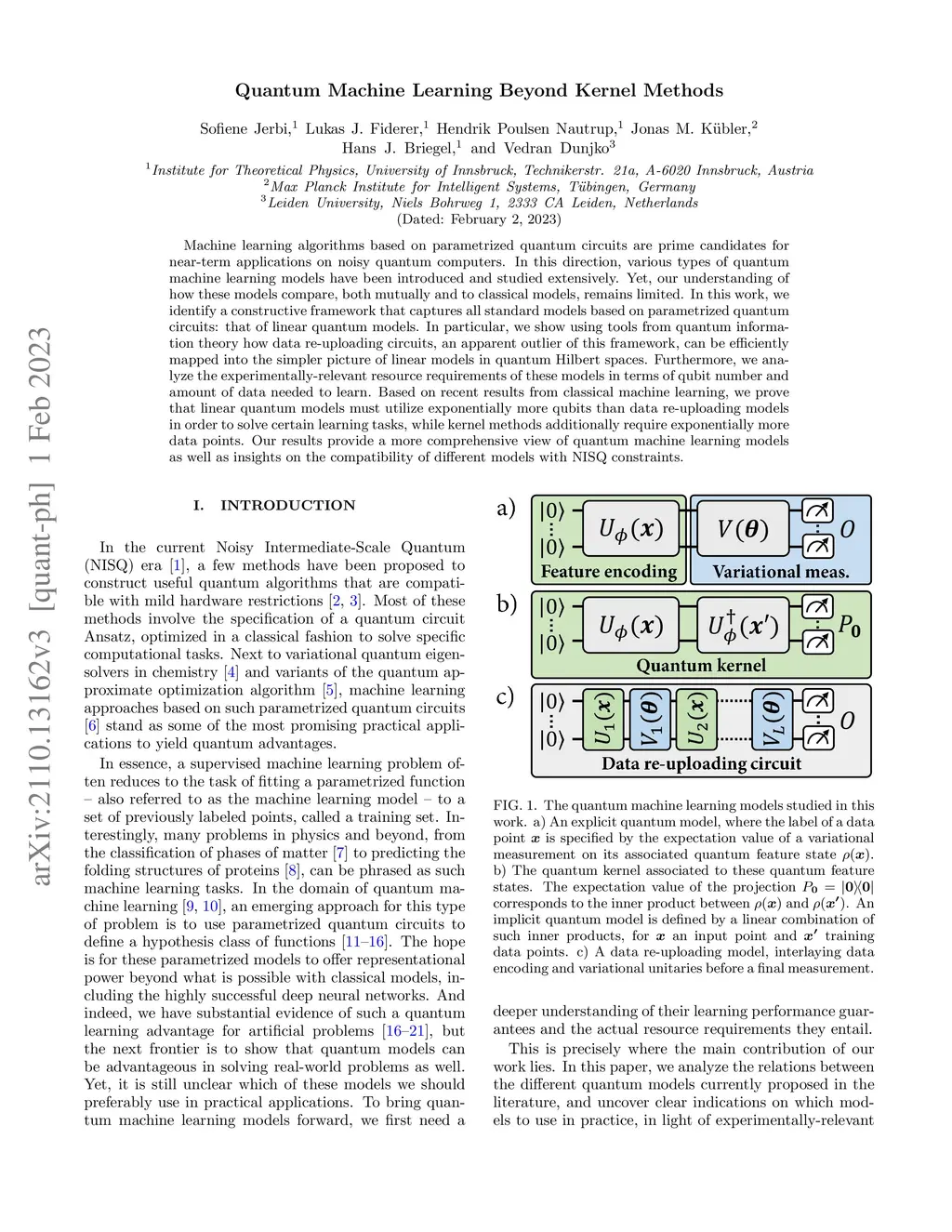 Quantum machine learning beyond kernel methods