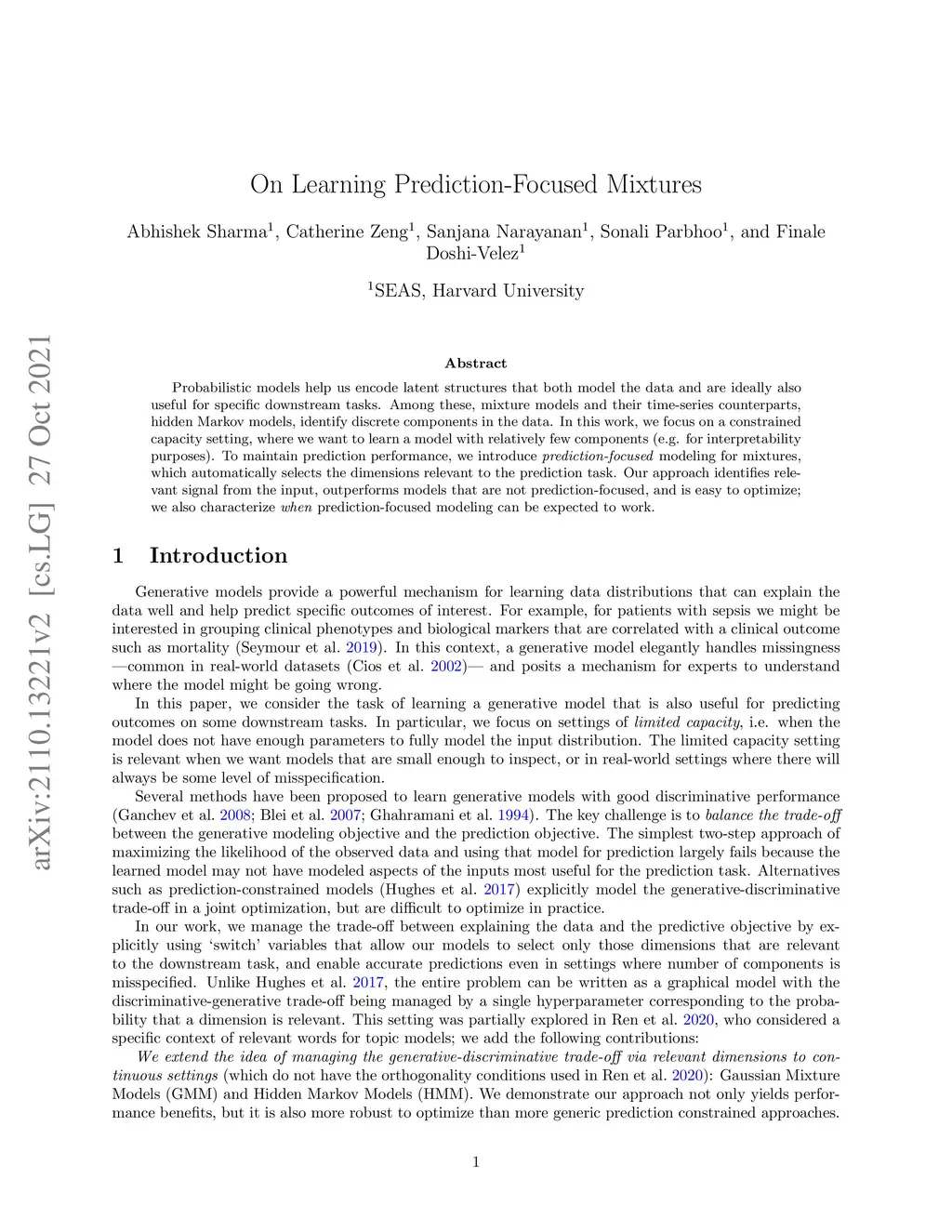 Probabilistic models help us encode latent structures that both model the data and are ideally also useful for specific downstream tasks. Among these, mixture models and their time-series counterparts, hidden Markov models, identify discrete components in the data. In this work, we focus on a constrained capacity setting, where we want to learn a model with relatively few components (e.g. for interpretability purposes). To maintain prediction performance, we introduce prediction-focused modeling for mixtures, which automatically selects the dimensions relevant to the prediction task. Our approach identifies relevant signal from the input, outperforms models that are not prediction-focused, and is easy to optimize; we also characterize when prediction-focused modeling can be expected to work.
