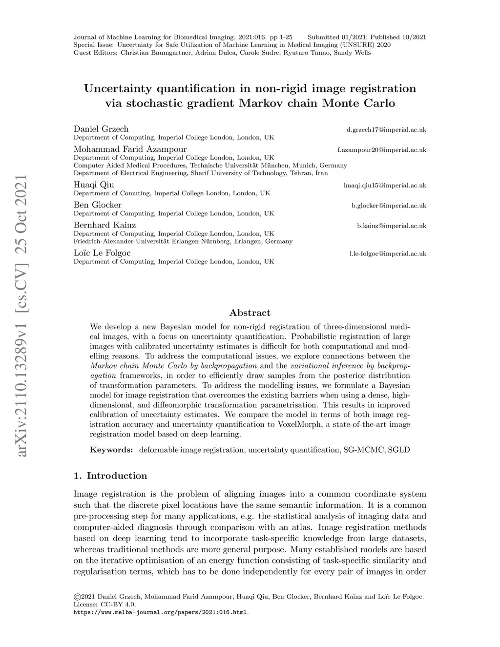 Uncertainty quantification in non-rigid image registration via