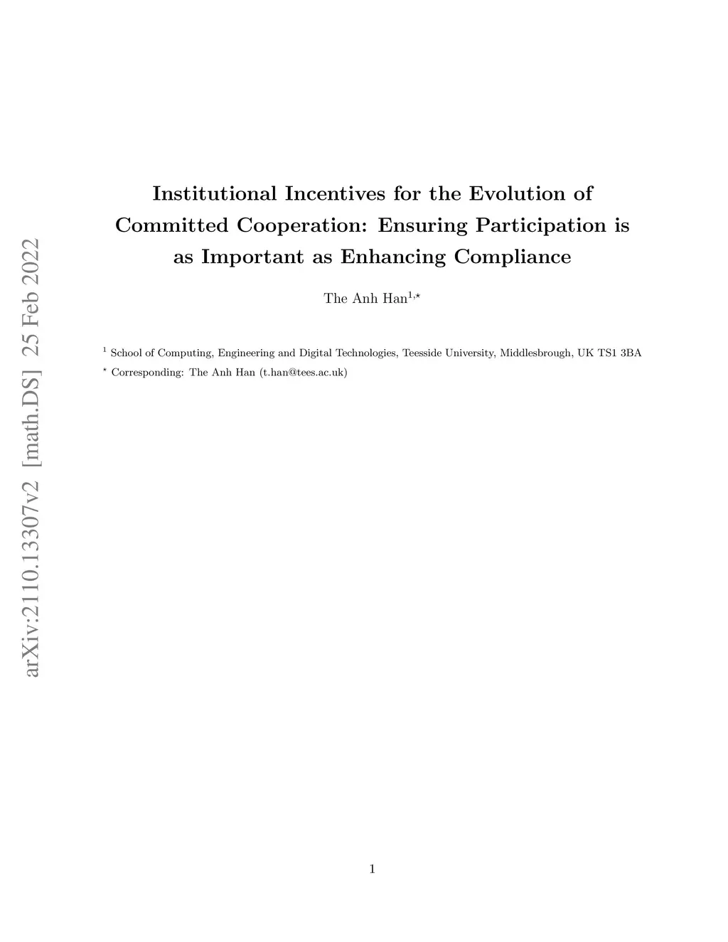 Institutional Incentives for the Evolution of Committed Cooperation: