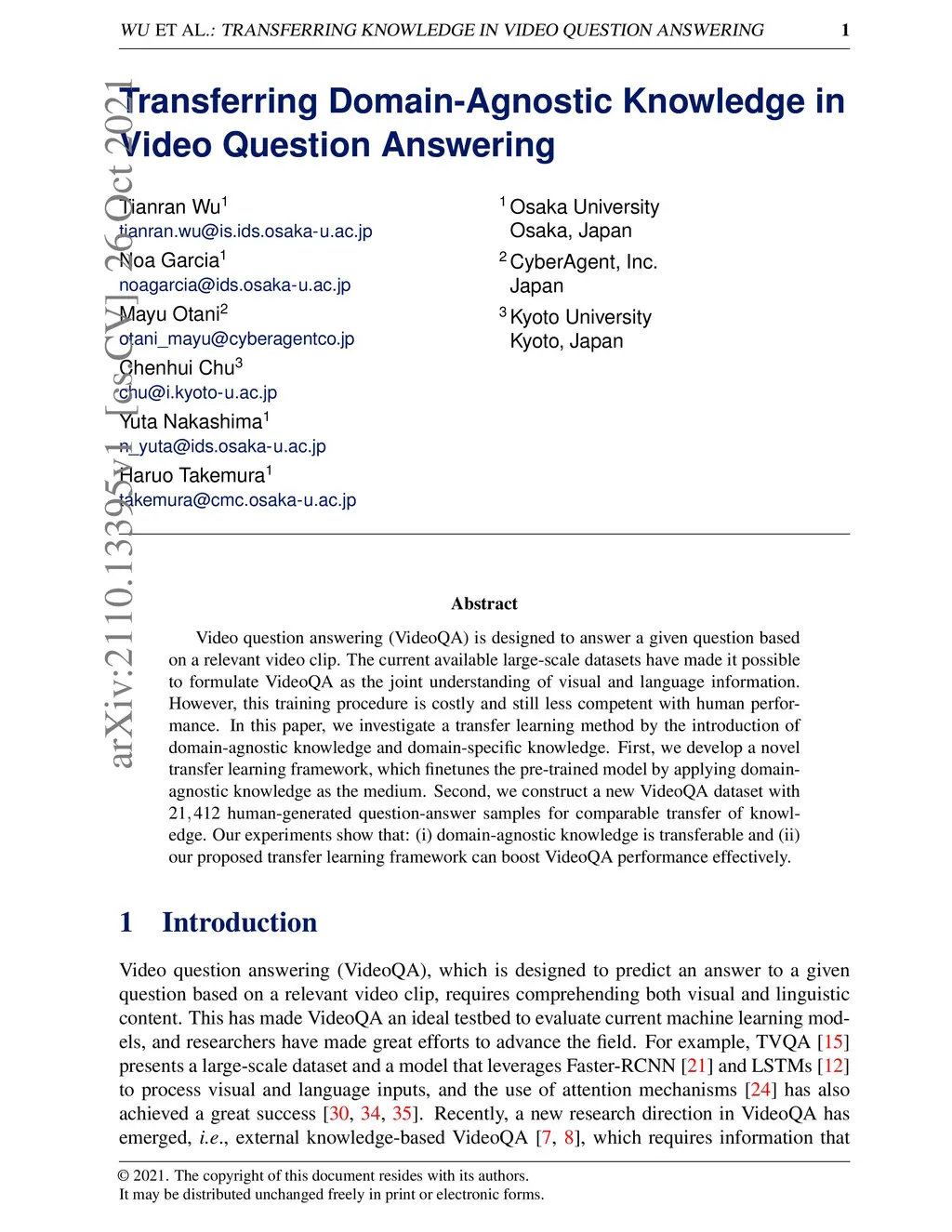 Transferring Domain-Agnostic Knowledge in Video Question Answering