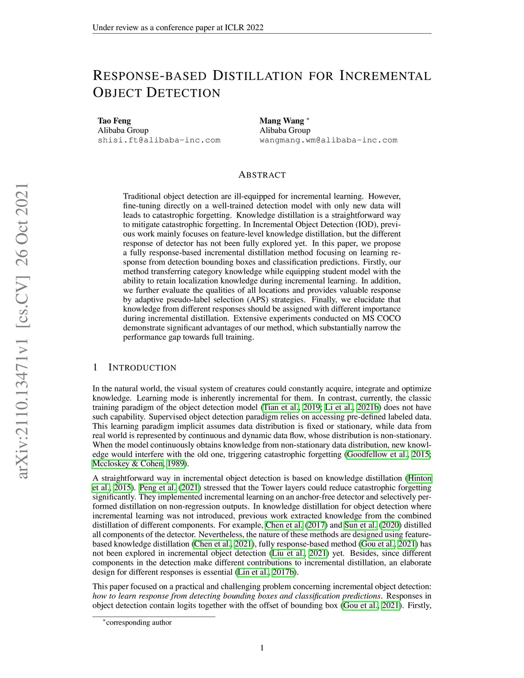 Response-based Distillation for Incremental Object Detection
