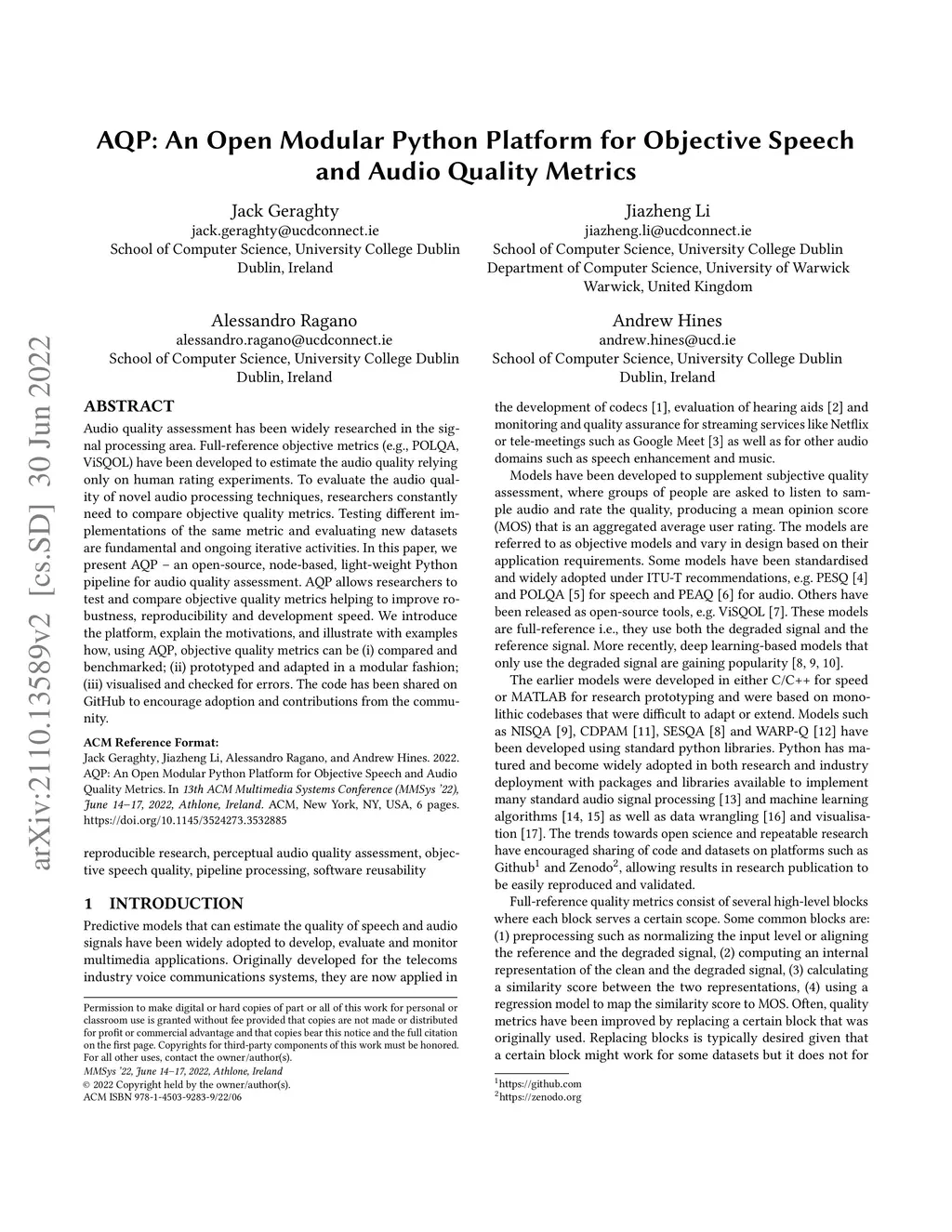 AQP: An Open Modular Python Platform for Objective Speech and Audio
