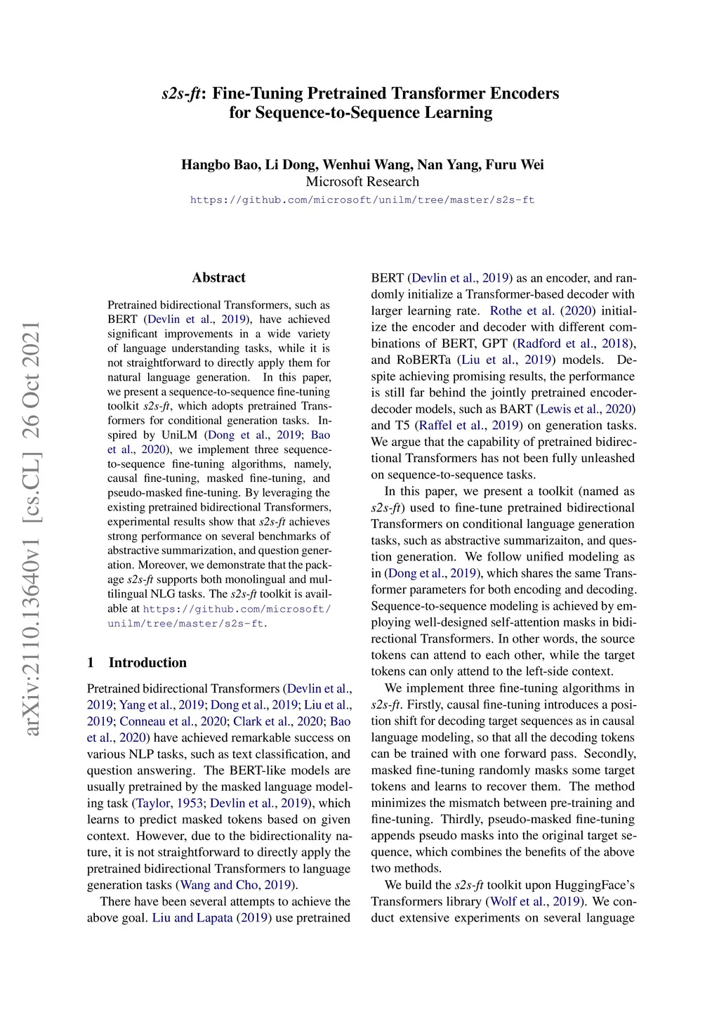 s2s-ft: Fine-Tuning Pretrained Transformer Encoders for
