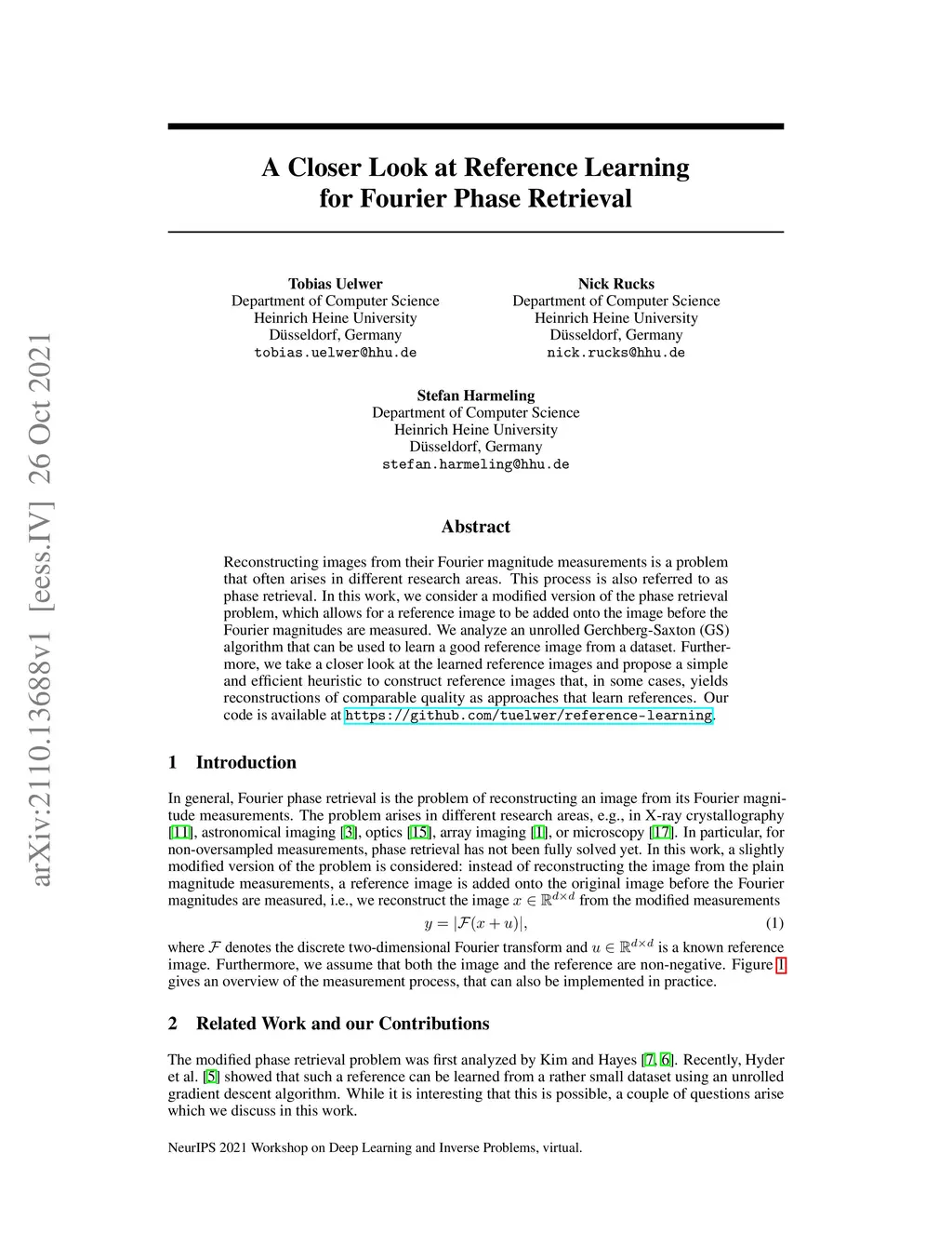 Reconstructing images from their Fourier magnitude measurements is a problem that often arises in different research areas. This process is also referred to as phase retrieval. In this work, we consider a modified version of the phase retrieval problem, which allows for a reference image to be added onto the image before the Fourier magnitudes are measured. We analyze an unrolled Gerchberg-Saxton (GS) algorithm that can be used to learn a good reference image from a dataset. Furthermore, we take a closer look at the learned reference images and propose a simple and efficient heuristic to construct reference images that, in some cases, yields reconstructions of comparable quality as approaches that learn references. Our code is available at https://github.com/tuelwer/reference-learning.