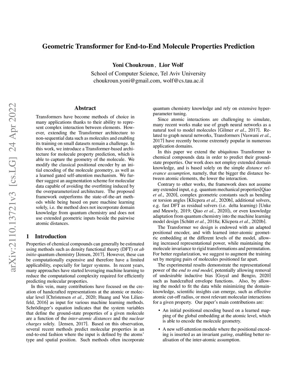 Geometric Transformer for End-to-End Molecule Properties Prediction