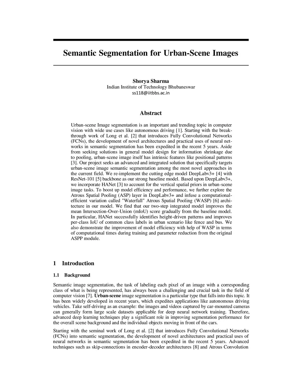 Urban-scene Image segmentation is an important and trending topic in computer vision with wide use cases like autonomous driving [1]. Starting with the breakthrough work of Long et al. [2] that introduces Fully Convolutional Networks (FCNs), the development of novel architectures and practical uses of neural networks in semantic segmentation has been expedited in the recent 5 years. Aside from seeking solutions in general model design for information shrinkage due to pooling, urban-scene image itself has intrinsic features like positional patterns [3]. Our project seeks an advanced and integrated solution that specifically targets urban-scene image semantic segmentation among the most novel approaches in the current field. We re-implement the cutting edge model DeepLabv3+ [4] with ResNet-101 [5] backbone as our strong baseline model. Based upon DeepLabv3+, we incorporate HANet [3] to account for the vertical spatial priors in urban-scene image tasks. To boost up model efficiency and performance, we further explore the Atrous Spatial Pooling (ASP) layer in DeepLabv3+ and infuse a computational efficient variation called "Waterfall" Atrous Spatial Pooling (WASP) [6] architecture in our model. We find that our two-step integrated model improves the mean Intersection-Over-Union (mIoU) score gradually from the baseline model. In particular, HANet successfully identifies height-driven patterns and improves per-class IoU of common class labels in urban scenario like fence and bus. We also demonstrate the improvement of model efficiency with help of WASP in terms of computational times during training and parameter reduction from the original ASPP module.