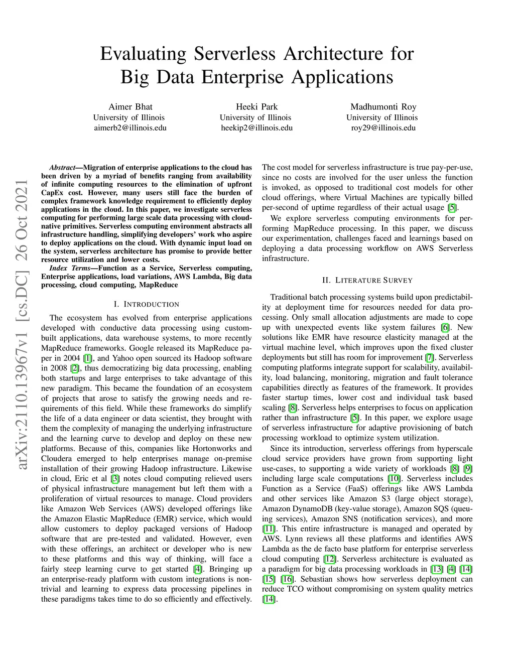 Evaluating Serverless Architecture for Big Data Enterprise Applications