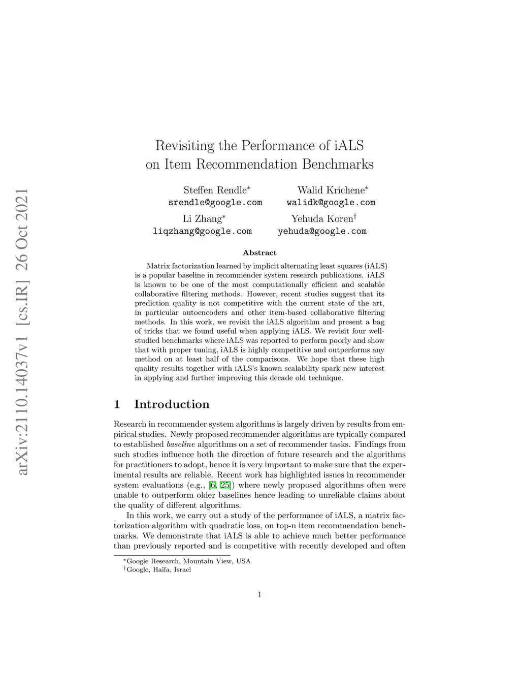 Revisiting the Performance of iALS on Item Recommendation Benchmarks
