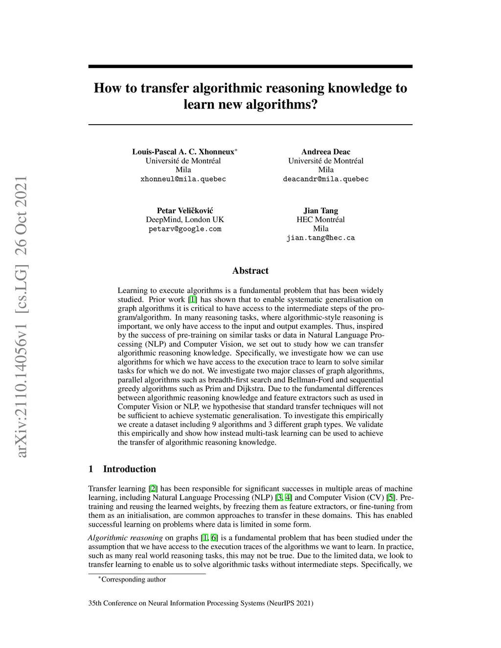 How to transfer algorithmic reasoning knowledge to learn new algorithms?