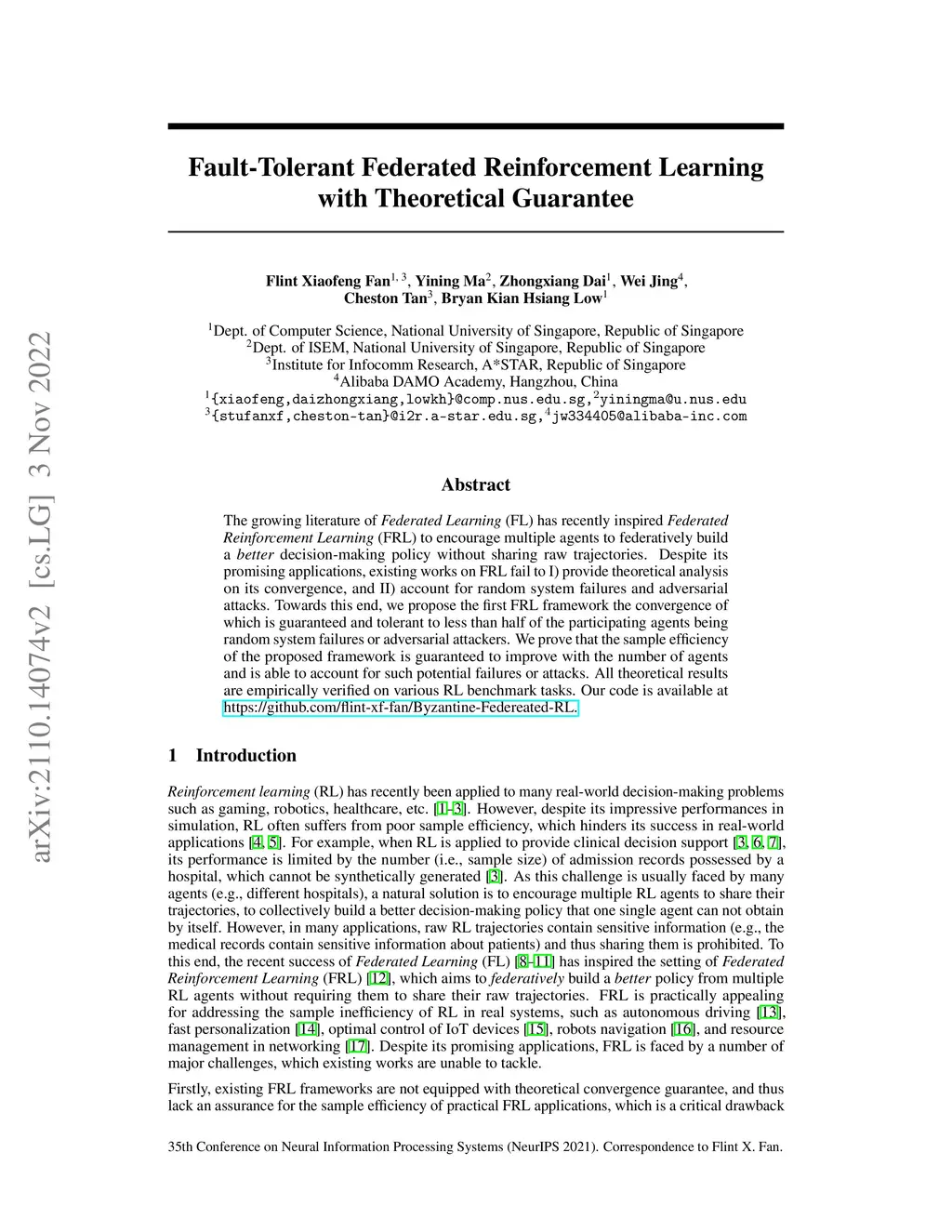 Fault-Tolerant Federated Reinforcement Learning with Theoretical