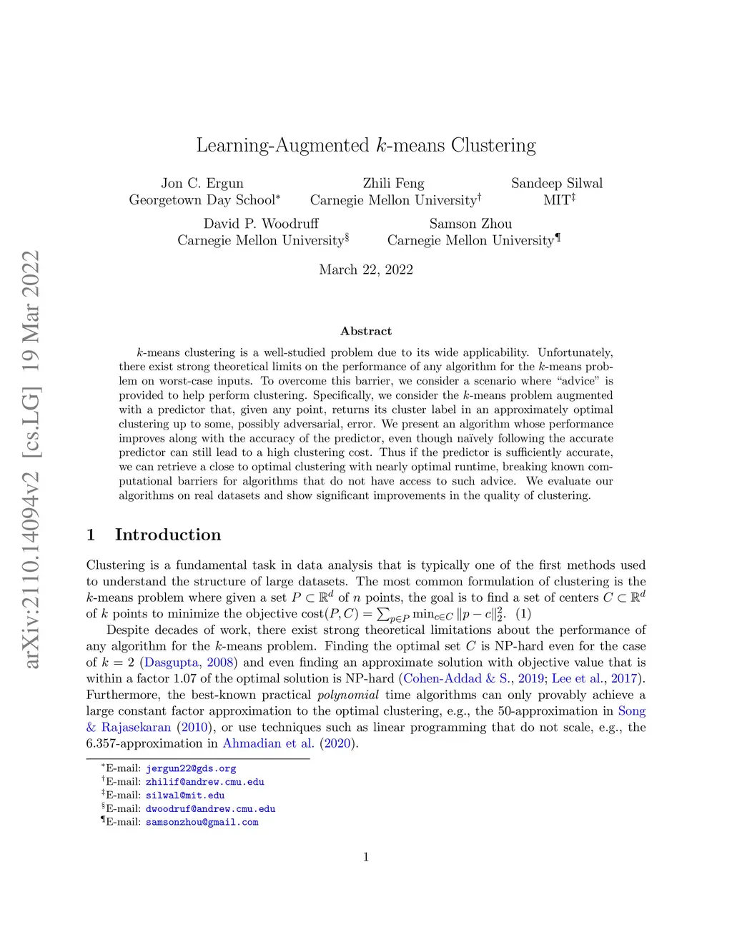 Learning-Augmented -means Clustering