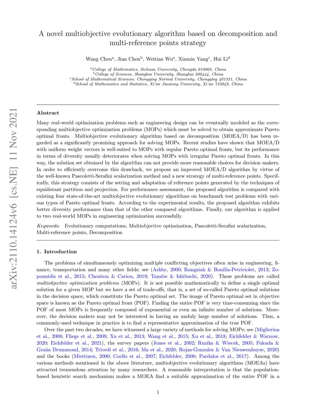 A novel multiobjective evolutionary algorithm based on decomposition and