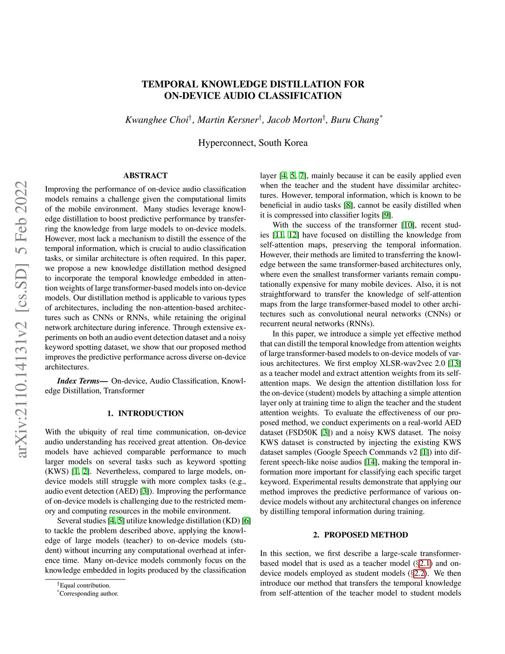 Improving the performance of on-device audio classification models remains a challenge given the computational limits of the mobile environment. Many studies leverage knowledge distillation to boost predictive performance by transferring the knowledge from large models to on-device models. However, most lack a mechanism to distill the essence of the temporal information, which is crucial to audio classification tasks, or similar architecture is often required. In this paper, we propose a new knowledge distillation method designed to incorporate the temporal knowledge embedded in attention weights of large transformer-based models into on-device models. Our distillation method is applicable to various types of architectures, including the non-attention-based architectures such as CNNs or RNNs, while retaining the original network architecture during inference. Through extensive experiments on both an audio event detection dataset and a noisy keyword spotting dataset, we show that our proposed method improves the predictive performance across diverse on-device architectures.