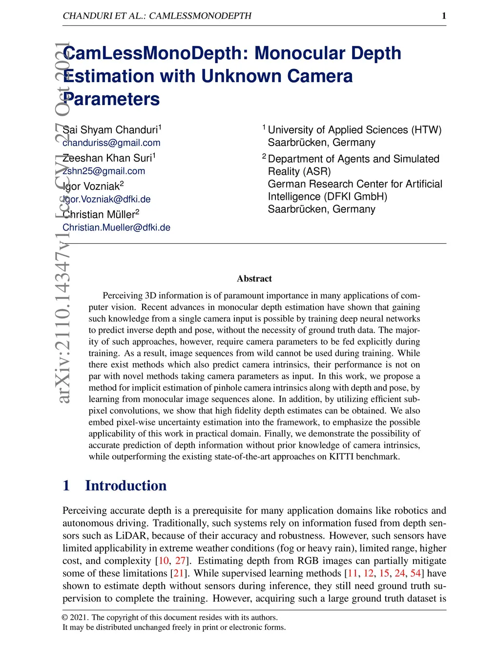 CamLessMonoDepth: Monocular Depth Estimation with Unknown Camera