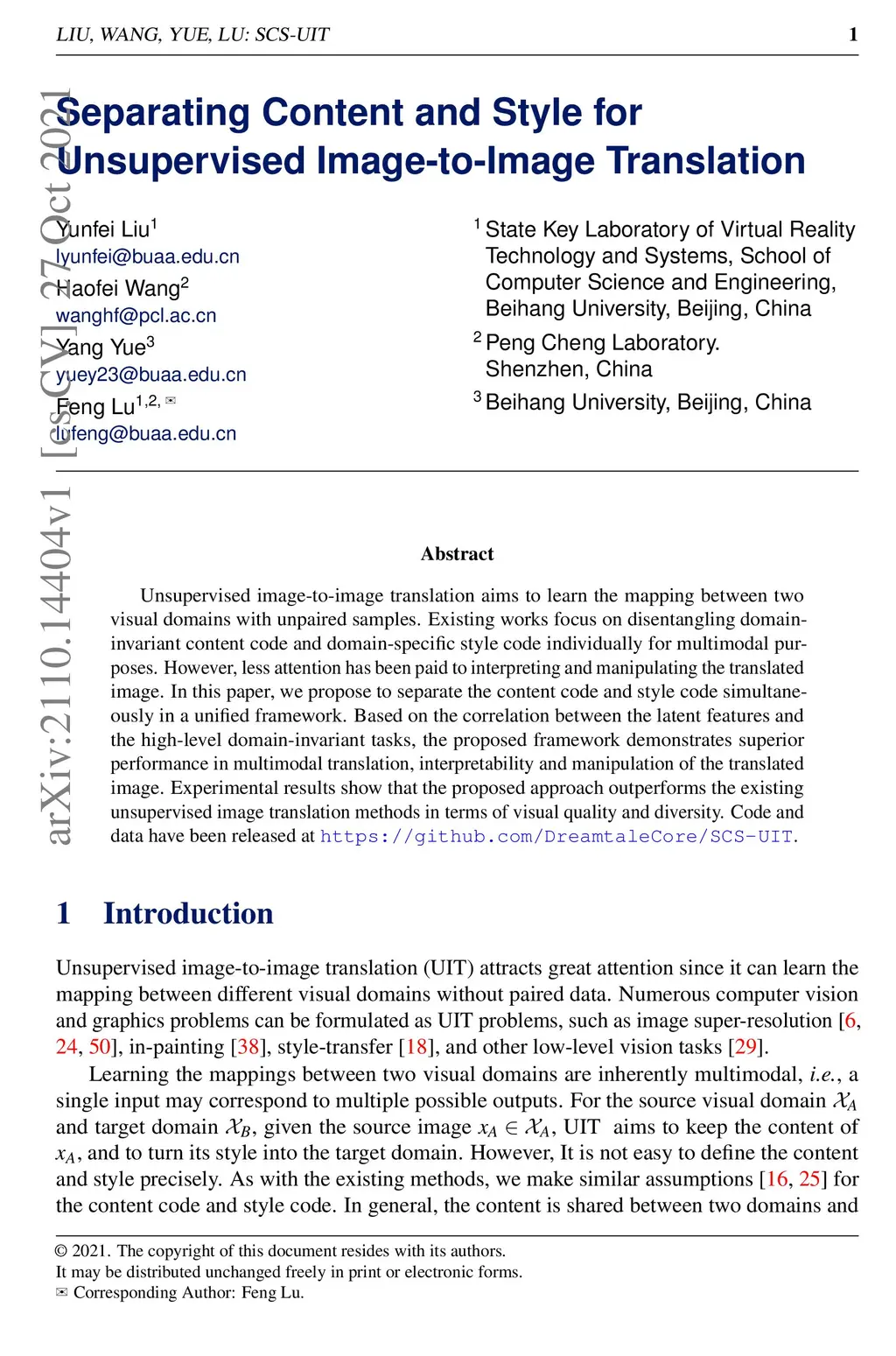 Unsupervised image-to-image translation aims to learn the mapping between two visual domains with unpaired samples. Existing works focus on disentangling domain-invariant content code and domain-specific style code individually for multimodal purposes. However, less attention has been paid to interpreting and manipulating the translated image. In this paper, we propose to separate the content code and style code simultaneously in a unified framework. Based on the correlation between the latent features and the high-level domain-invariant tasks, the proposed framework demonstrates superior performance in multimodal translation, interpretability and manipulation of the translated image. Experimental results show that the proposed approach outperforms the existing unsupervised image translation methods in terms of visual quality and diversity.