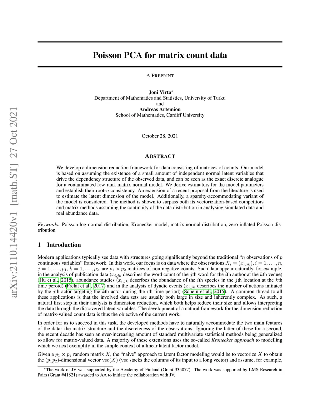 Poisson PCA for matrix count data