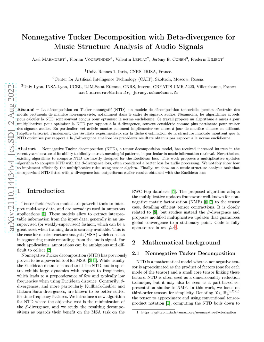 Nonnegative Tucker Decomposition with Beta-divergence for Music