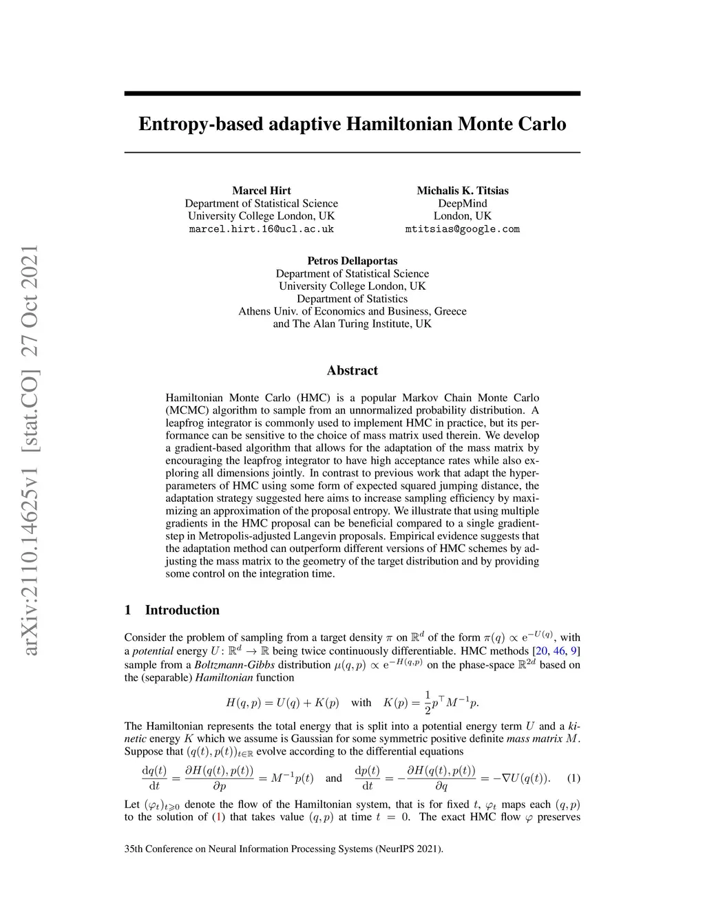 Entropy-based adaptive Hamiltonian Monte Carlo