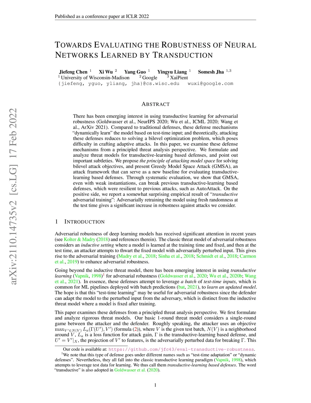 There has been emerging interest in using transductive learning for adversarial robustness (Goldwasser et al., NeurIPS 2020; Wu et al., ICML 2020; Wang et al., ArXiv 2021). Compared to traditional defenses, these defense mechanisms "dynamically learn" the model based on test-time input; and theoretically, attacking these defenses reduces to solving a bilevel optimization problem, which poses difficulty in crafting adaptive attacks. In this paper, we examine these defense mechanisms from a principled threat analysis perspective. We formulate and analyze threat models for transductive-learning based defenses, and point out important subtleties. We propose the principle of attacking model space for solving bilevel attack objectives, and present Greedy Model Space Attack (GMSA), an attack framework that can serve as a new baseline for evaluating transductive-learning based defenses. Through systematic evaluation, we show that GMSA, even with weak instantiations, can break previous transductive-learning based defenses, which were resilient to previous attacks, such as AutoAttack. On the positive side, we report a somewhat surprising empirical result of "transductive adversarial training": Adversarially retraining the model using fresh randomness at the test time gives a significant increase in robustness against attacks we consider.