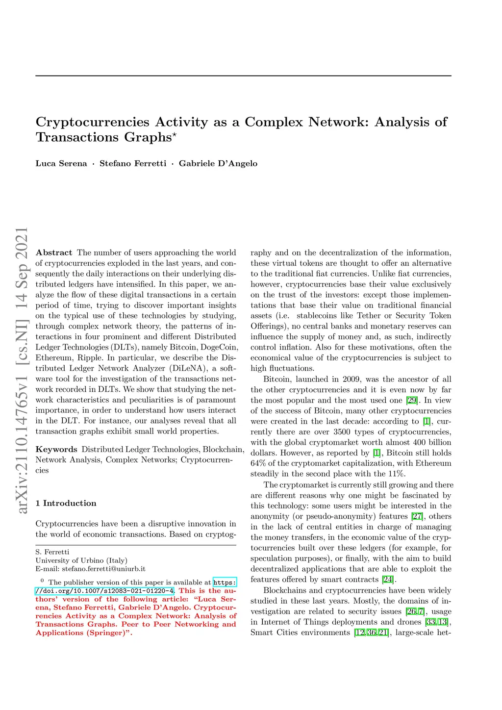 Cryptocurrencies Activity as a Complex Network: Analysis of Transactions